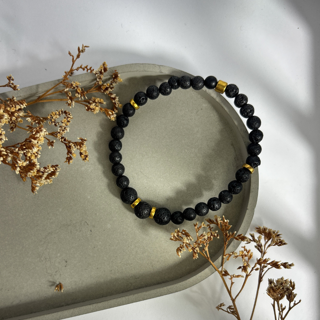 Schlichtes Armband aus Natursteinen mit individueller Struktur. Optional personalisierbar und vielseitig kombinierbar.
