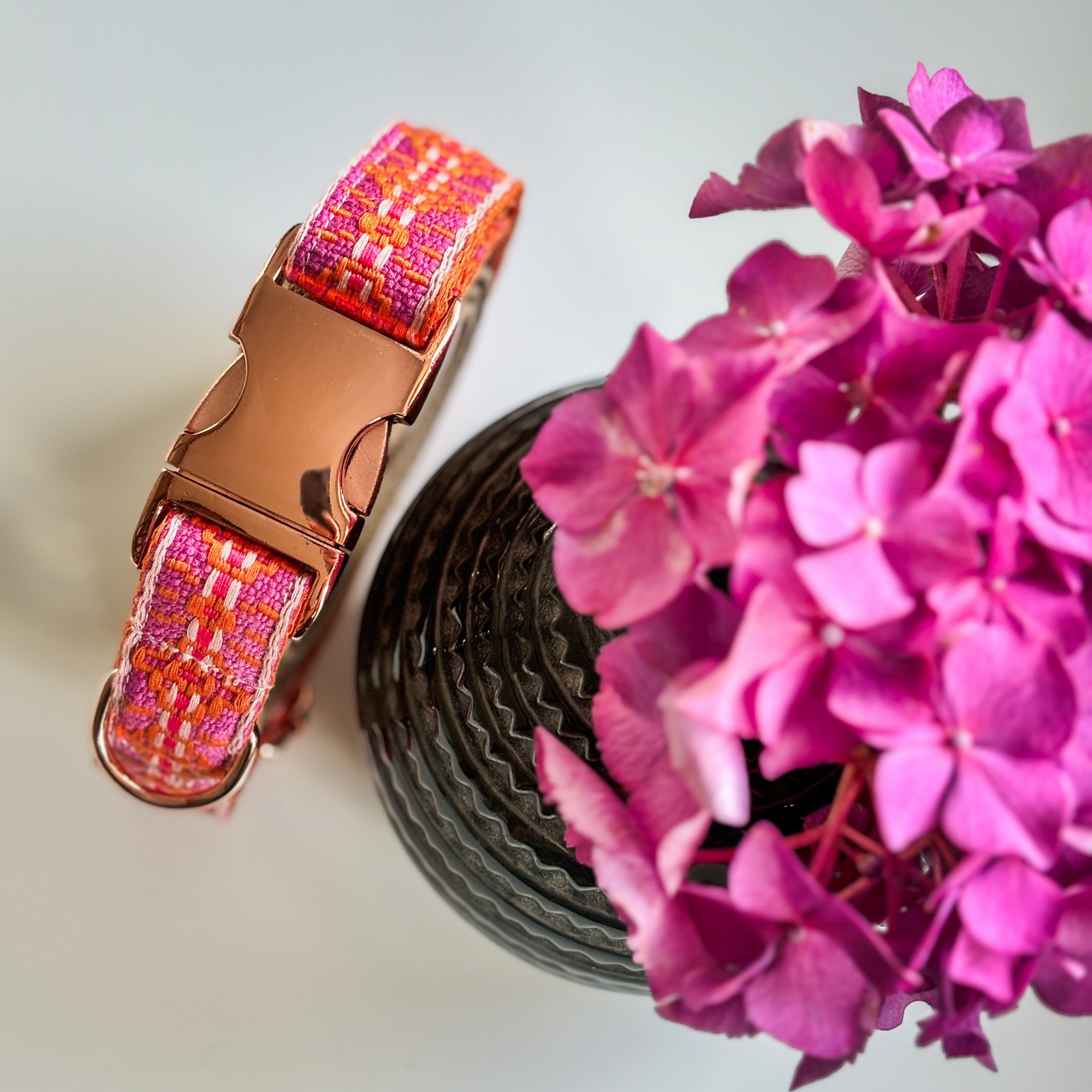 Dieses Halsband gehört zu unserer Klassiker-Kollektion und wird aus einem hochwertigen, fest gewebten Polyester-Gurtband gefertigt. Jede Kollektion hat ihr ganz eigenes Muster und ihren eigenen Look – dadurch bekommt jedes Halsband seinen ganz individuellen Charakter.