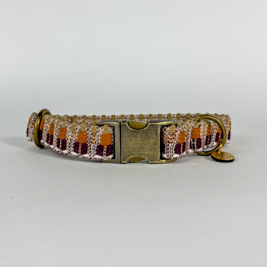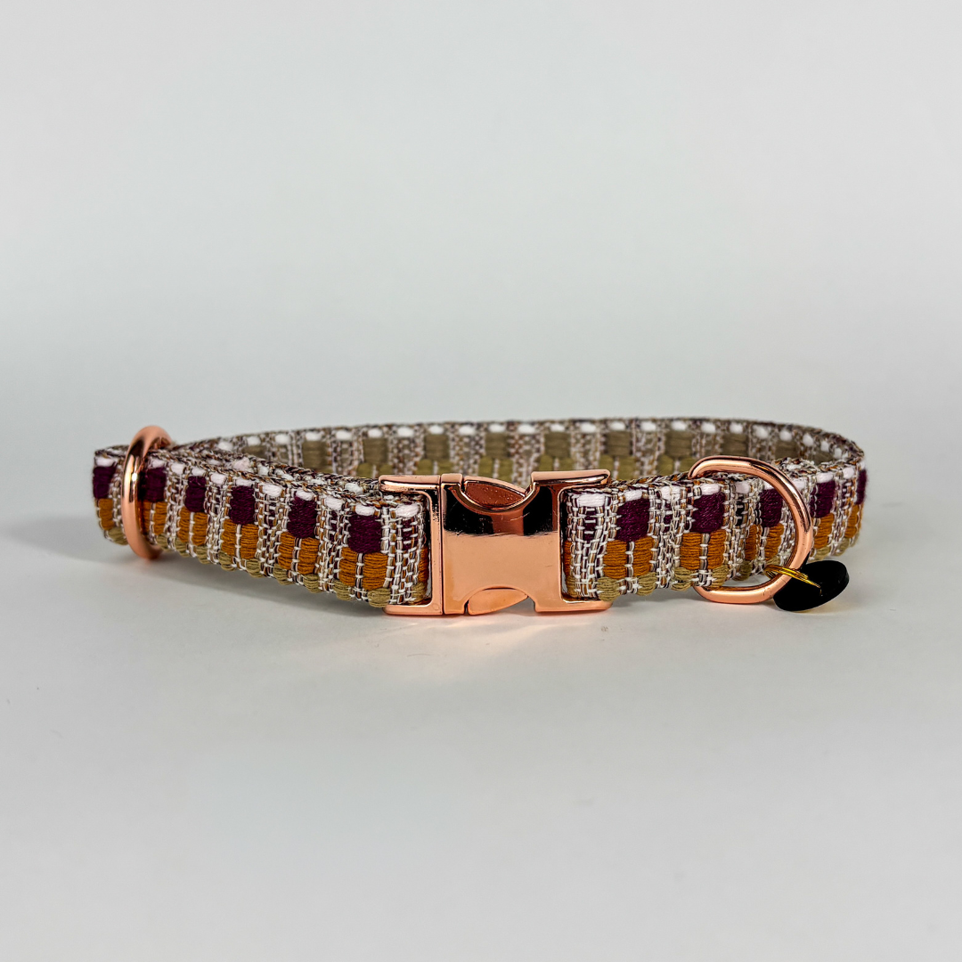 Dieses Halsband gehört zu unserer Klassiker-Kollektion und wird aus einem hochwertigen, fest gewebten Polyester-Gurtband gefertigt. Jede Kollektion hat ihr ganz eigenes Muster und ihren eigenen Look – dadurch bekommt jedes Halsband seinen ganz individuellen Charakter.