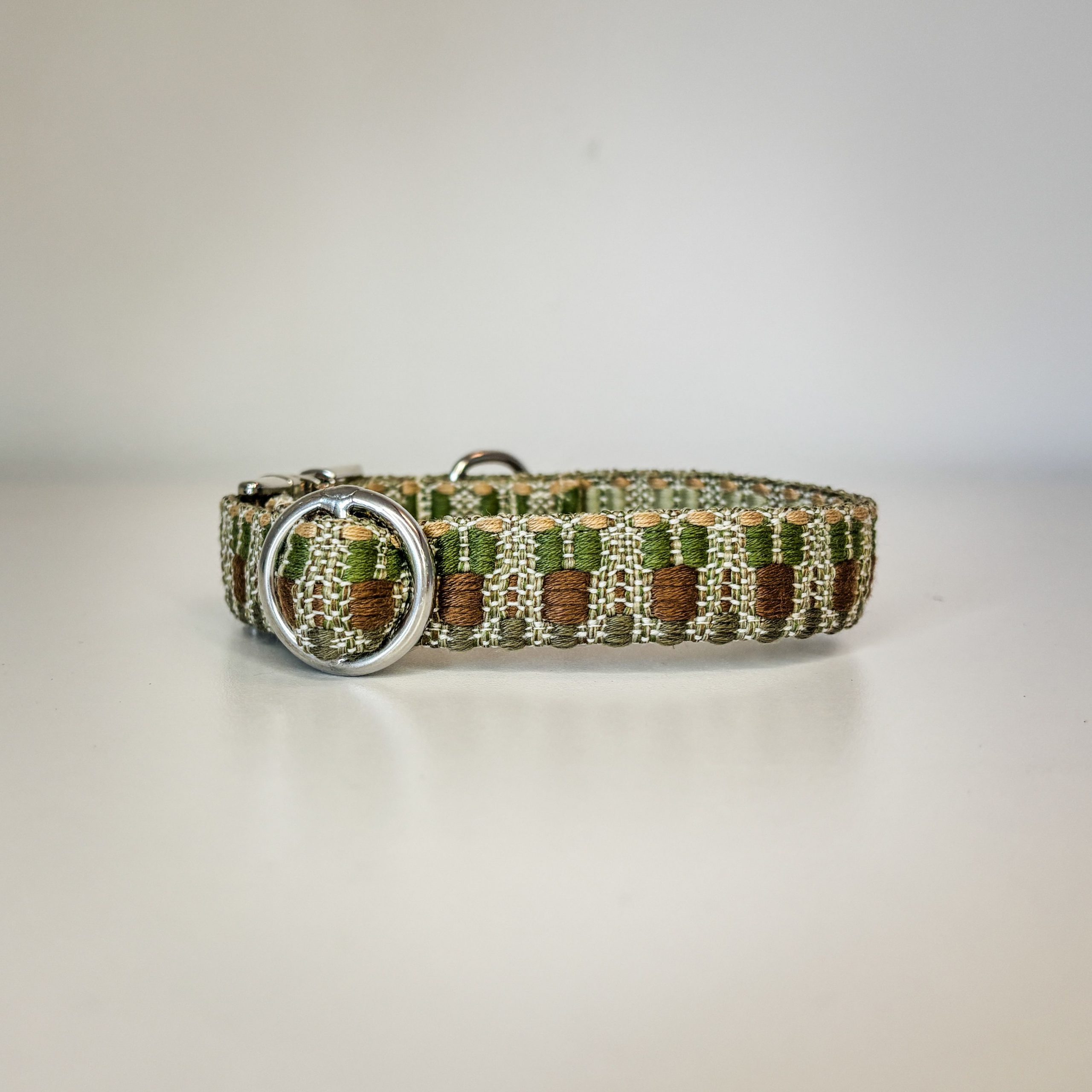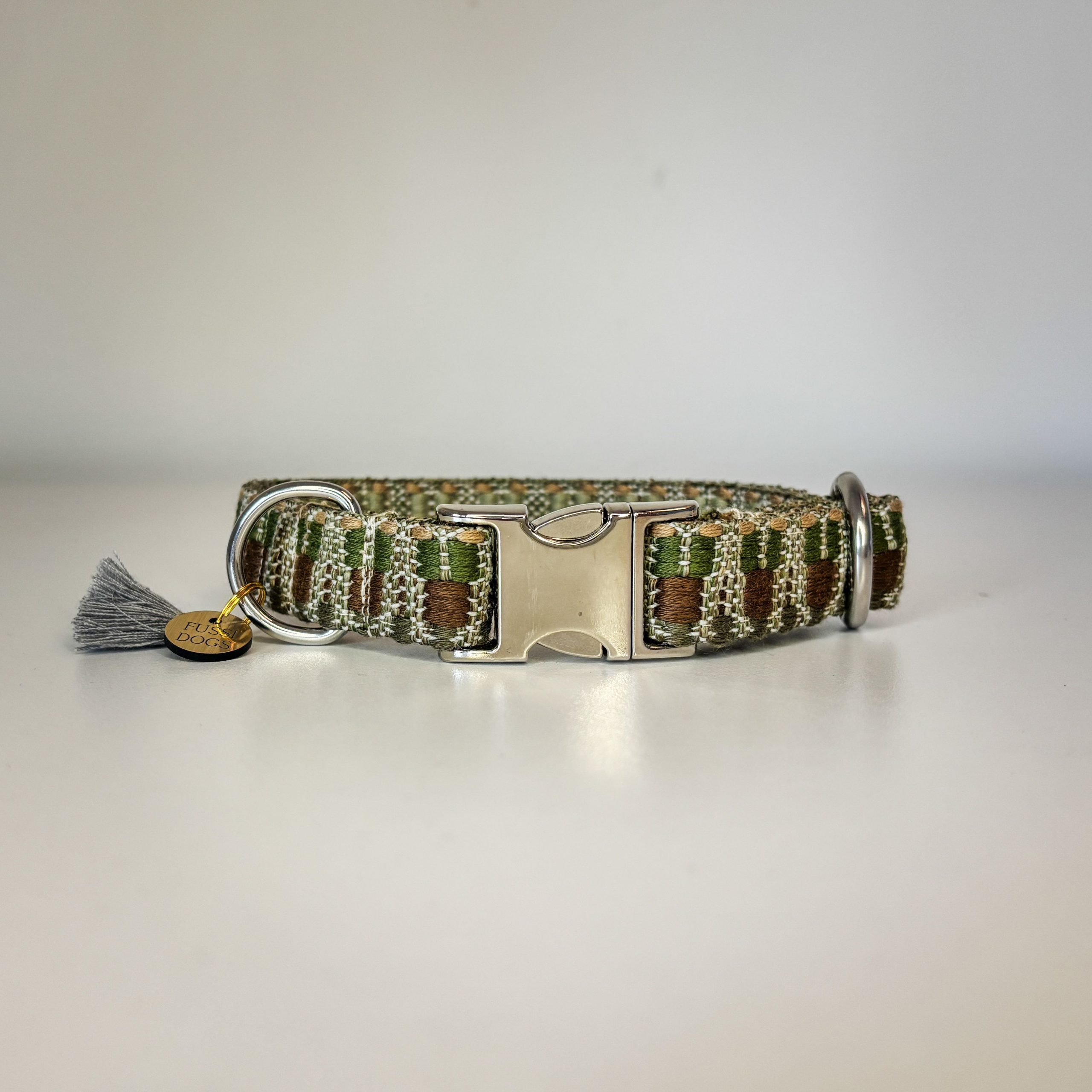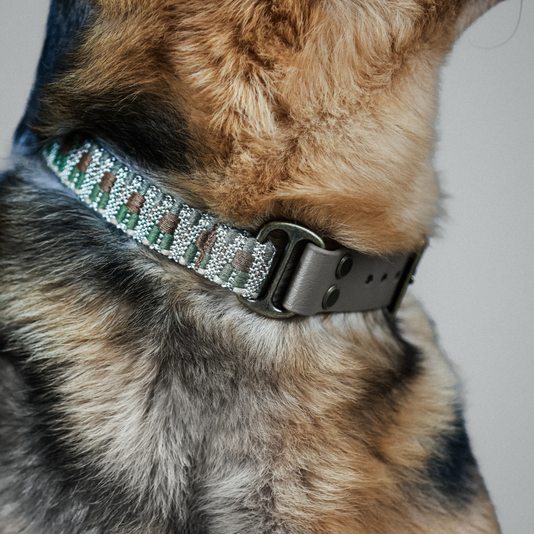 Dieses Halsband gehört zu unserer Klassiker-Kollektion und wird aus einem hochwertigen, fest gewebten Polyester-Gurtband gefertigt. Jede Kollektion hat ihr ganz eigenes Muster und ihren eigenen Look – dadurch bekommt jedes Halsband seinen ganz individuellen Charakter.