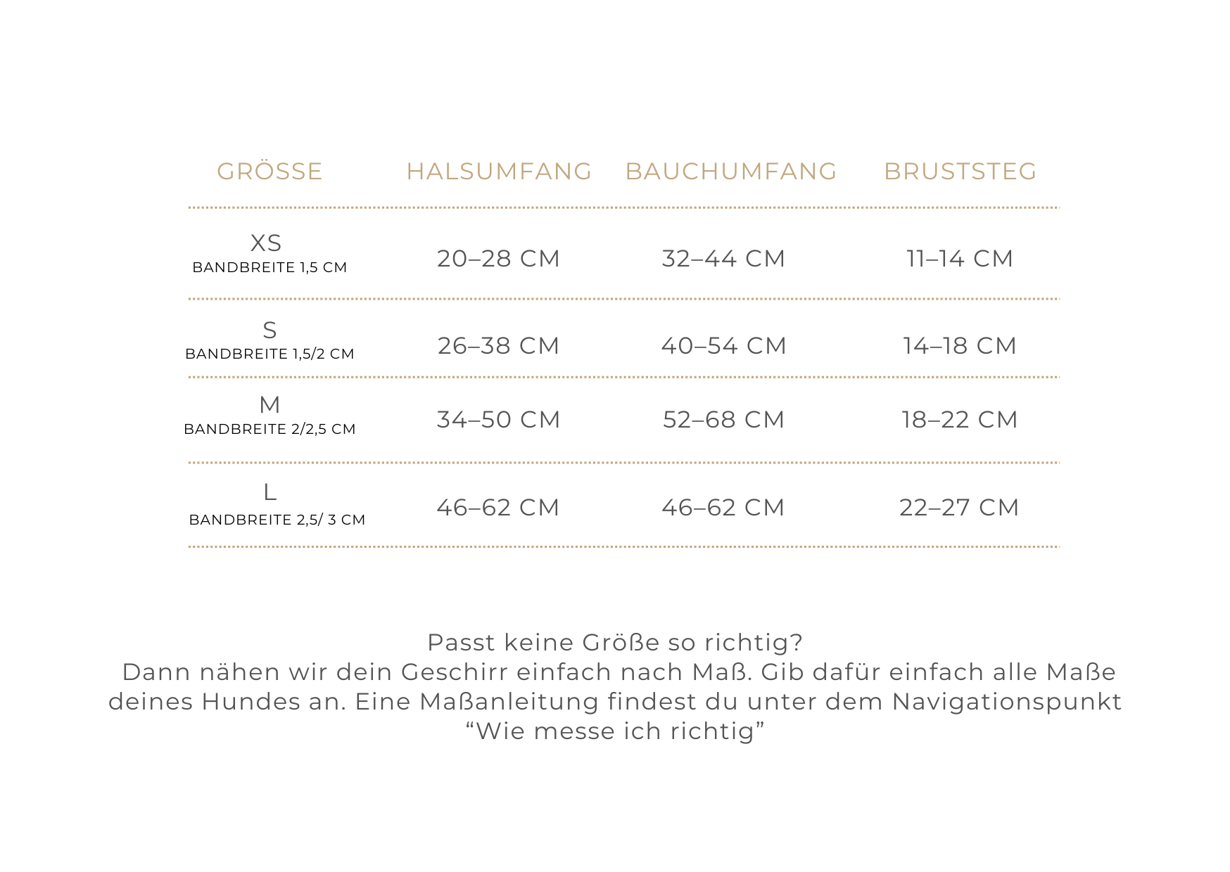 Wichtig – Maßangaben für dieses Hundegeschirr