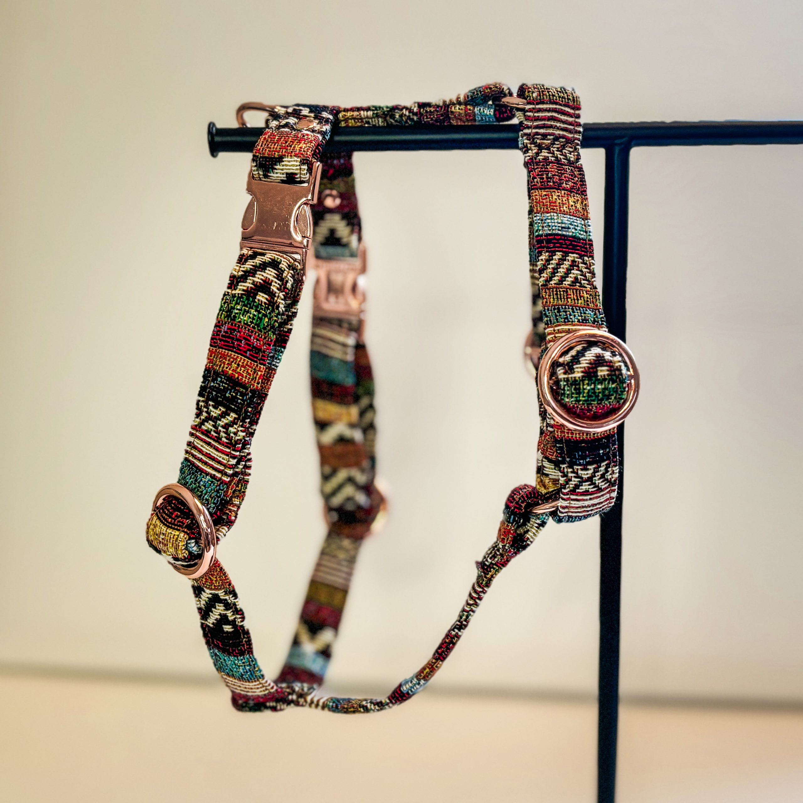 Das Hundegeschirr „Boho Outlander“ verbindet natürlichen Boho-Stil mit hohem Tragekomfort und zuverlässiger Alltagstauglichkeit. Gefertigt aus hochwertigem Canvas-Stoff, überzeugt es durch seine feste, griffige Struktur und sein charakterstarkes Muster. Durch den individuellen Stoffverlauf ist jedes Geschirr ein echtes Unikat.