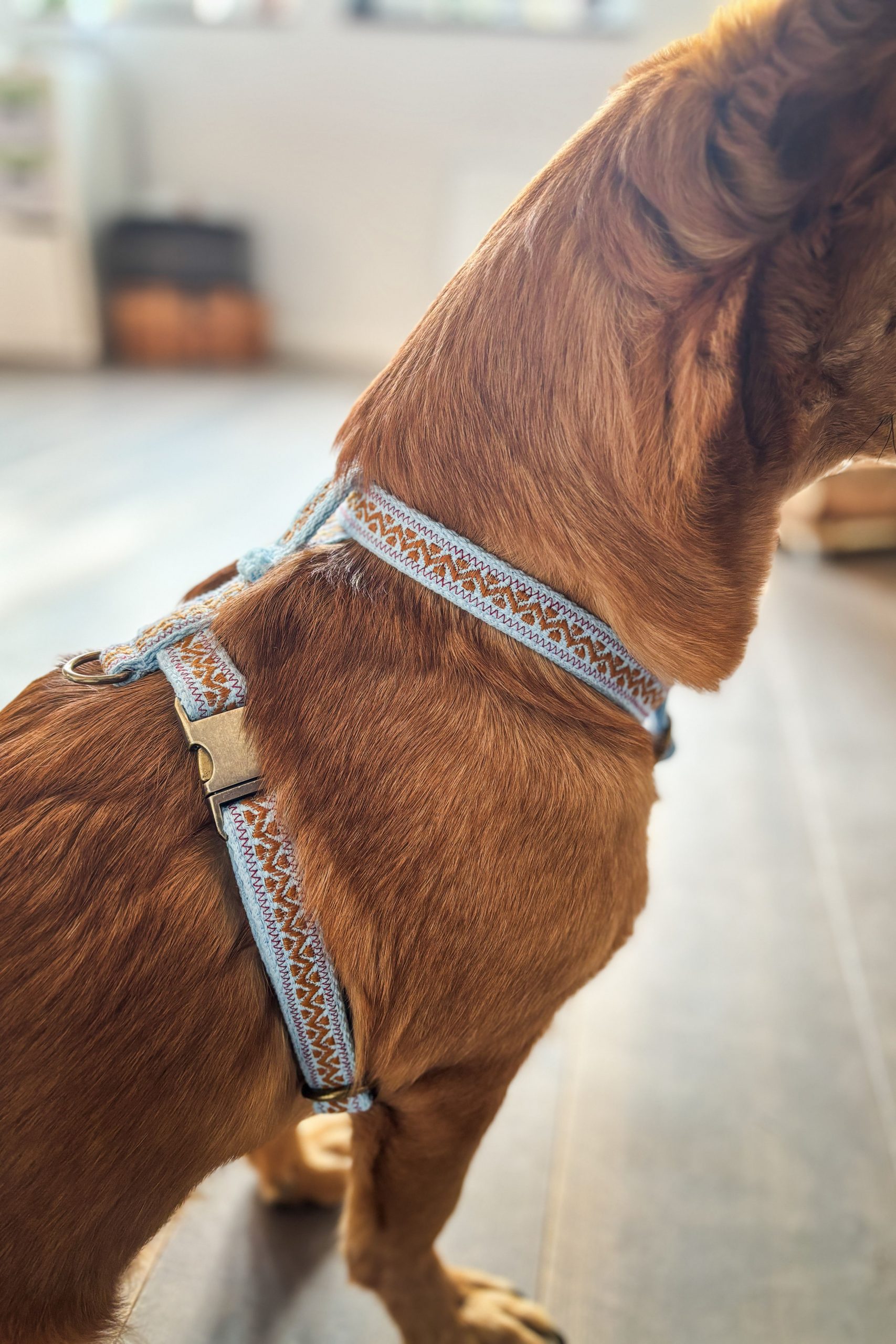Unsere Produkte werden mit größter Sorgfalt in Handarbeit gefertigt und regelmäßig auf Stabilität und Verarbeitung geprüft. Bitte kontrolliere das Geschirr dennoch regelmäßig auf Abnutzung, um die Sicherheit deines Hundes jederzeit zu gewährleisten.
