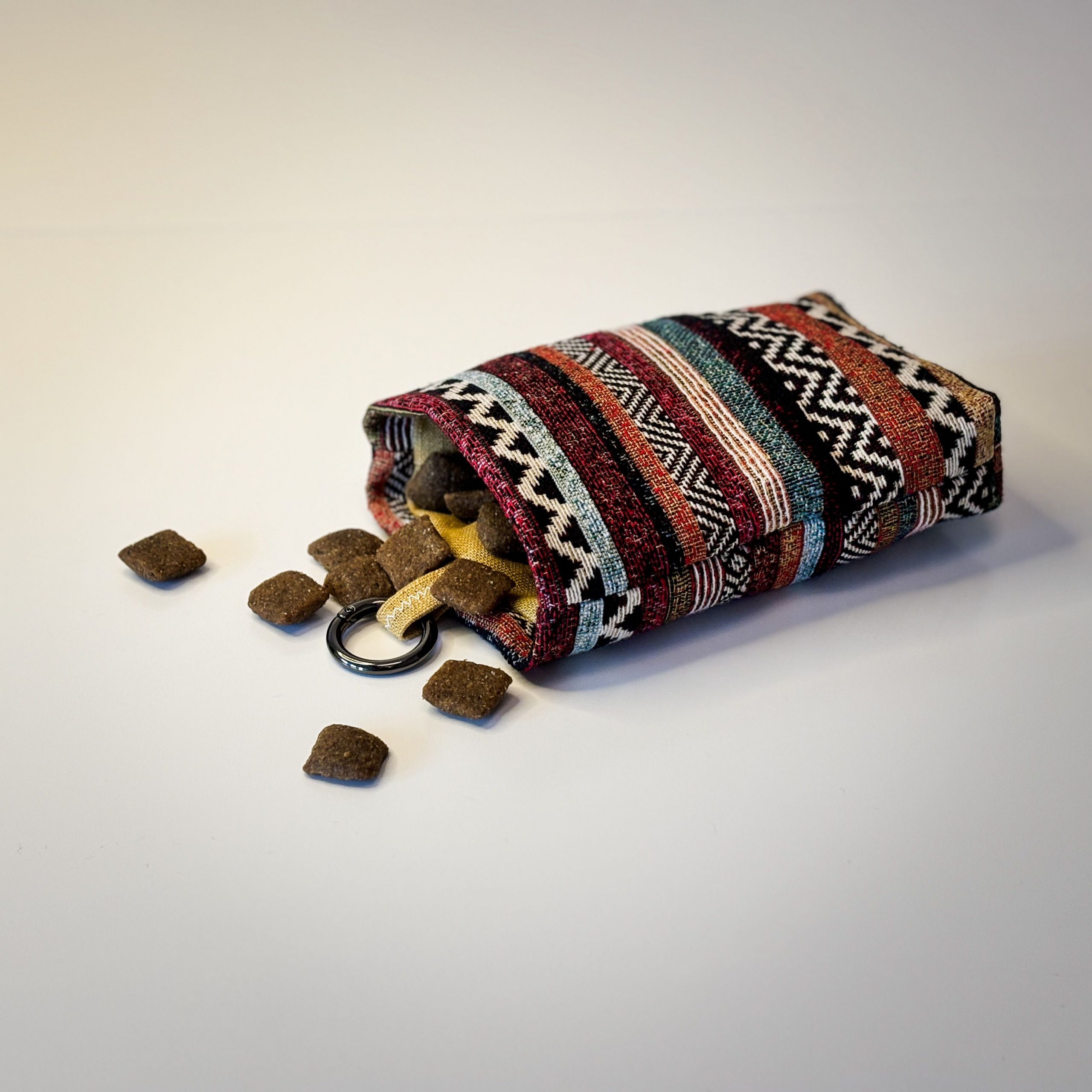 Der Leckerlibeutel „Boho Outlander“ ist der praktische Begleiter für Training, Spaziergänge und Alltag mit Hund. Gefertigt aus hochwertigem Canvas-Stoff, überzeugt er durch seine feste, formstabile Qualität und den charakterstarken Boho-Look. Durch den individuellen Stoffverlauf ist jeder Beutel ein kleines Unikat.